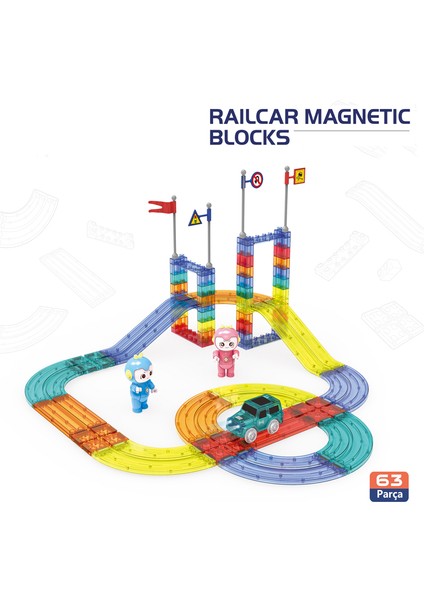 63 parçadan oluşan manyetik blok seti, çocukların hayal gücünü kullanarak farklı yapılar oluşturmasını sağlayan eğitici bir oyuncaktır. İçerisinde bulunan tekerlekli araba parçası sayesinde çocuklar yaptıkları yapıların üzerinde araçla oyun oynayabilir ve daha eğlenceli bir deneyim yaşayabilir.